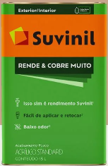 Suvinil Rende & Cobre Muito é a tinta que rende mais. Fácil de aplicar e de espalhar e com baixo odor.