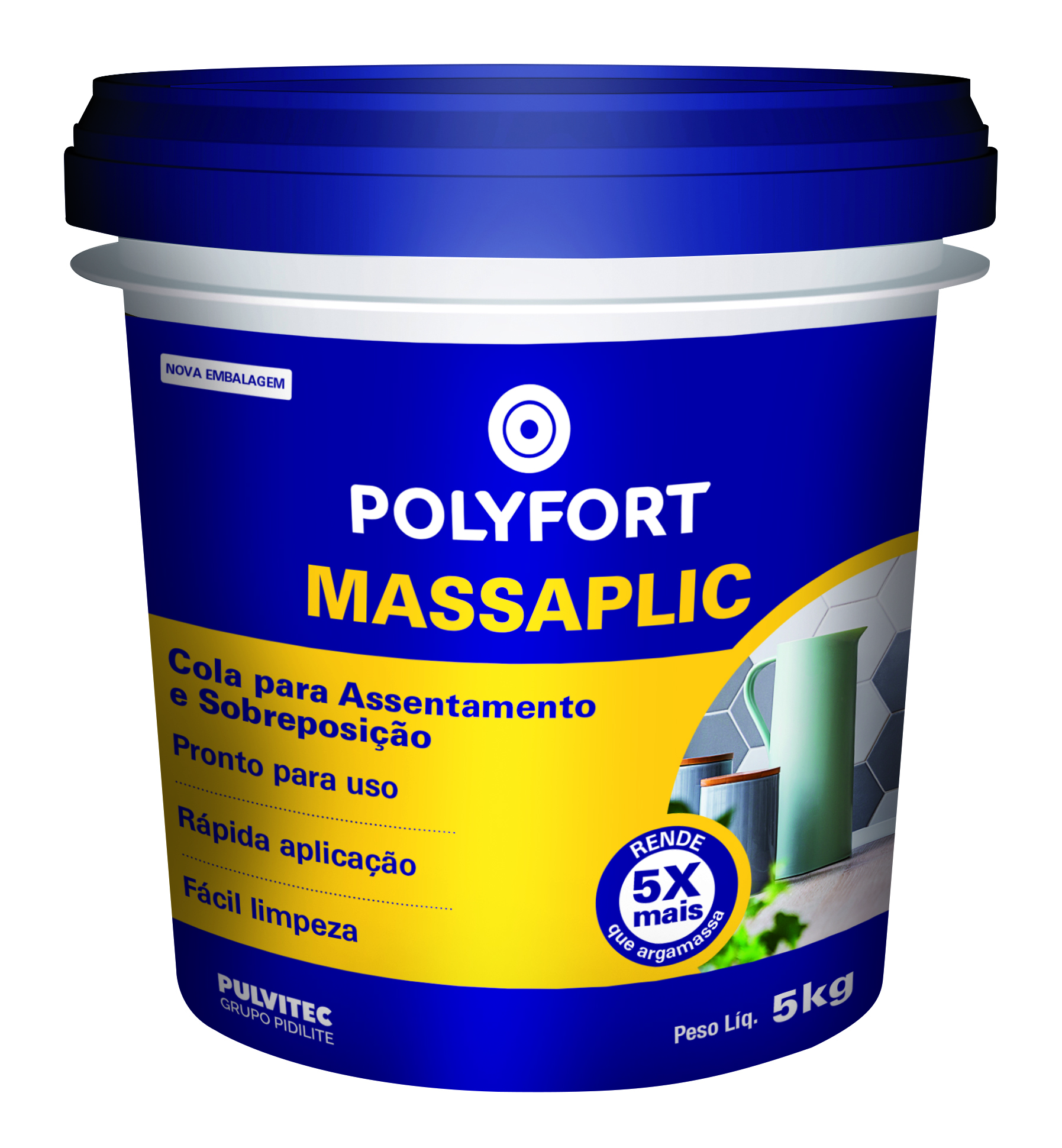 Polyfort Massaplic é um adesivo usado para assentamento e sobreposição de revestimentos, altamente resistente e econômico, podendo render até 5X mais que a argamassa tradicional.